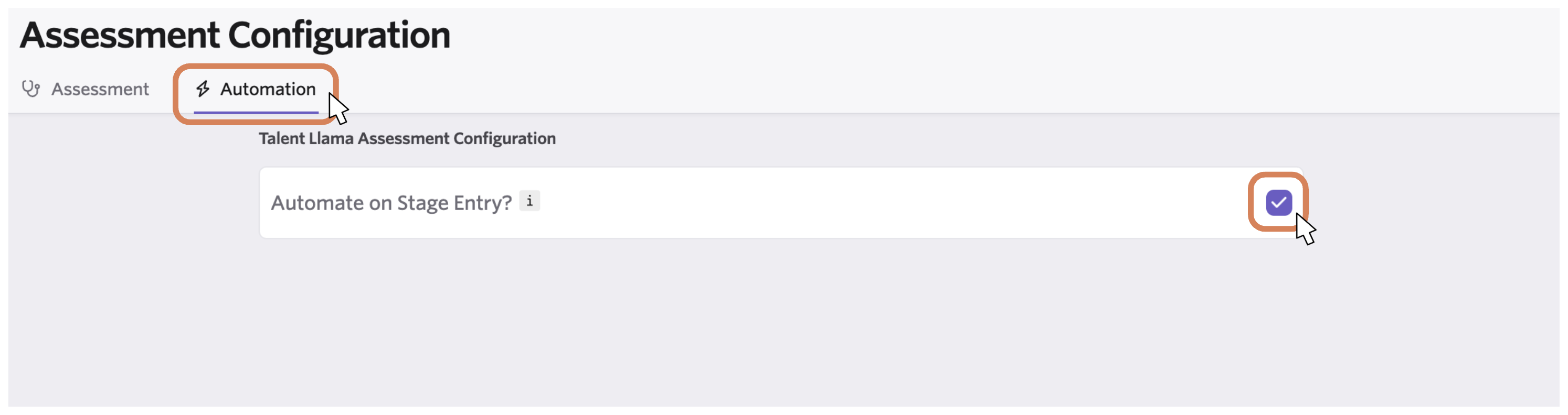 Then click Automation and ensure Automate on Stage Entry is checked. This will ensure that all new applicants get sent to Talent Llama automatically.