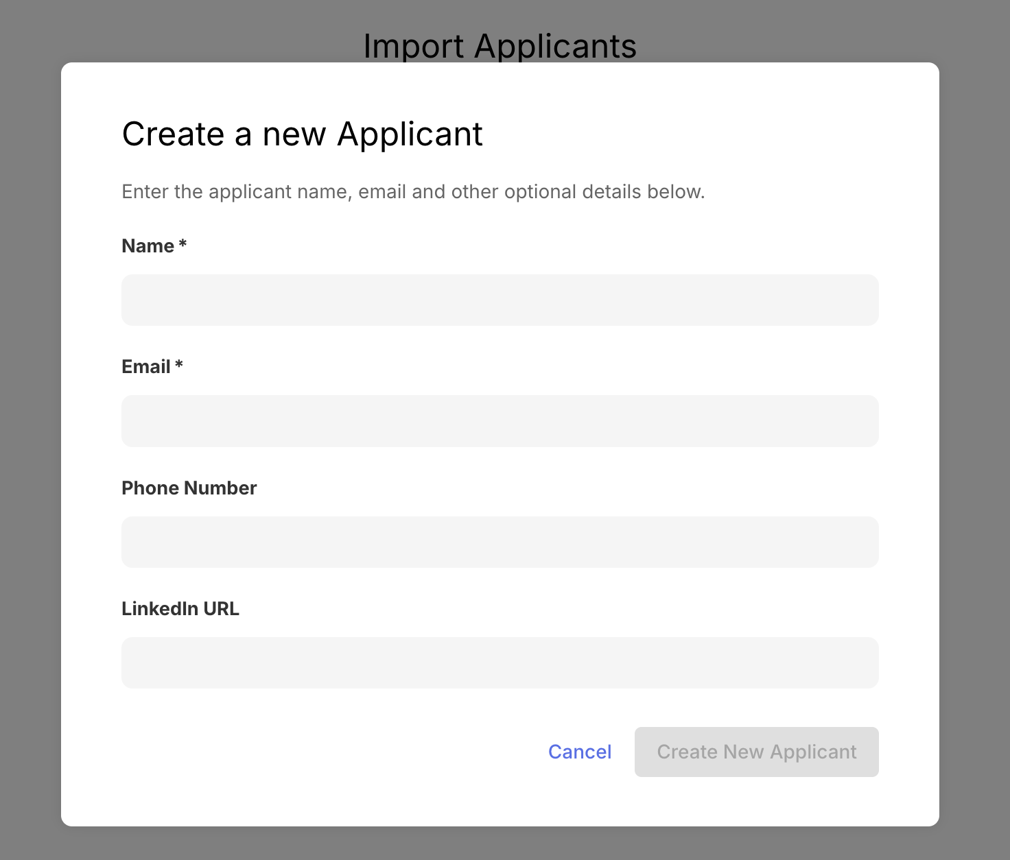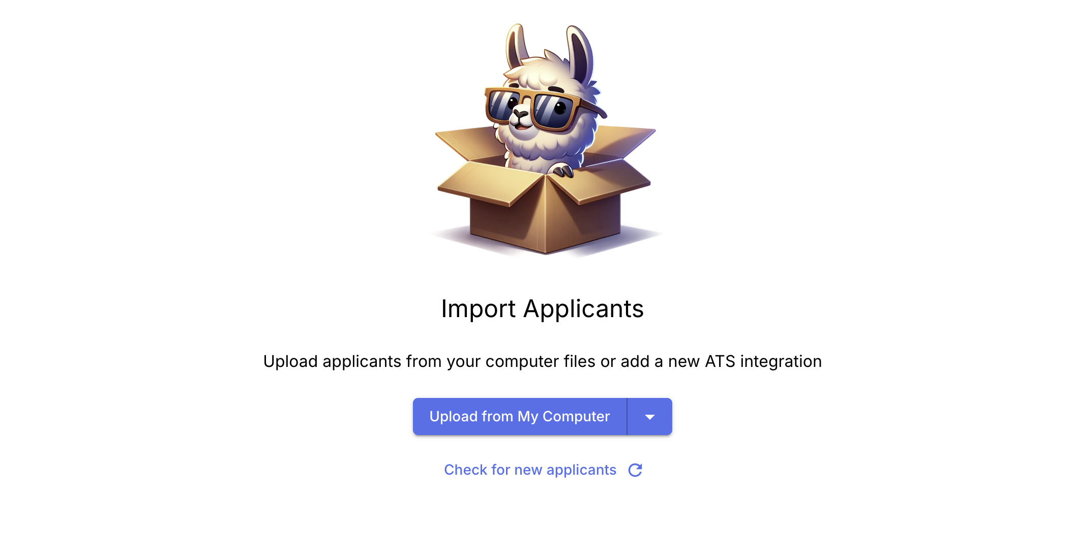 Step 2: If you haven't added any candidates, you'll see our friendly Llama-in-a-box. Click on Manually Create Applicant.