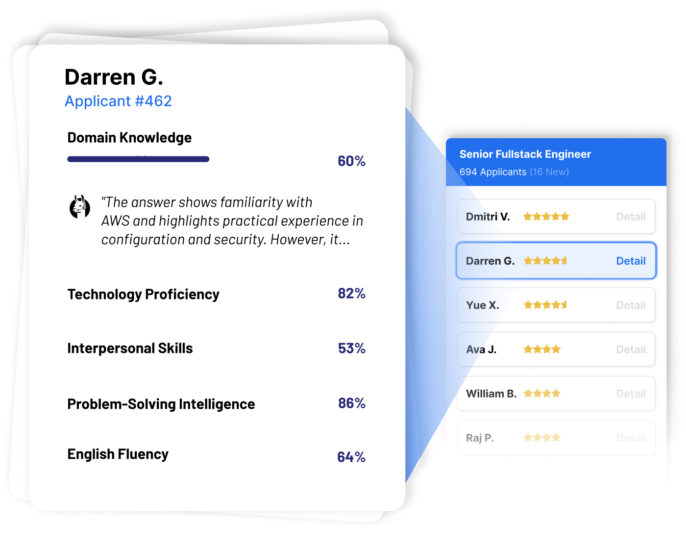 - Unbiased interviews – Candidates are assessed solely on their responses, never on personal identifiers such as name, background, or gender.