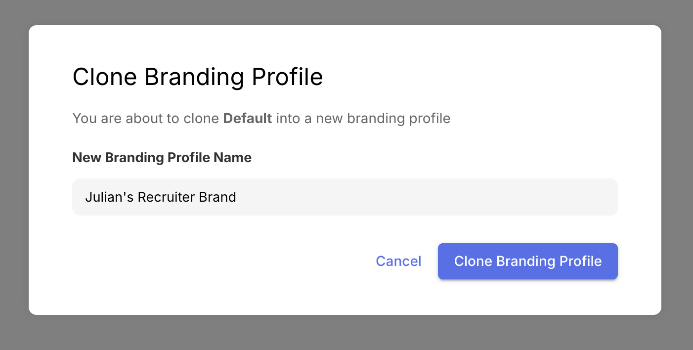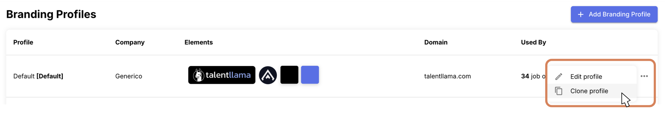 Step 2: You should see your companies brand here already, so click the three dots ( ⋯ ) on the right of the Branding Profile, and then click Clone Profile.