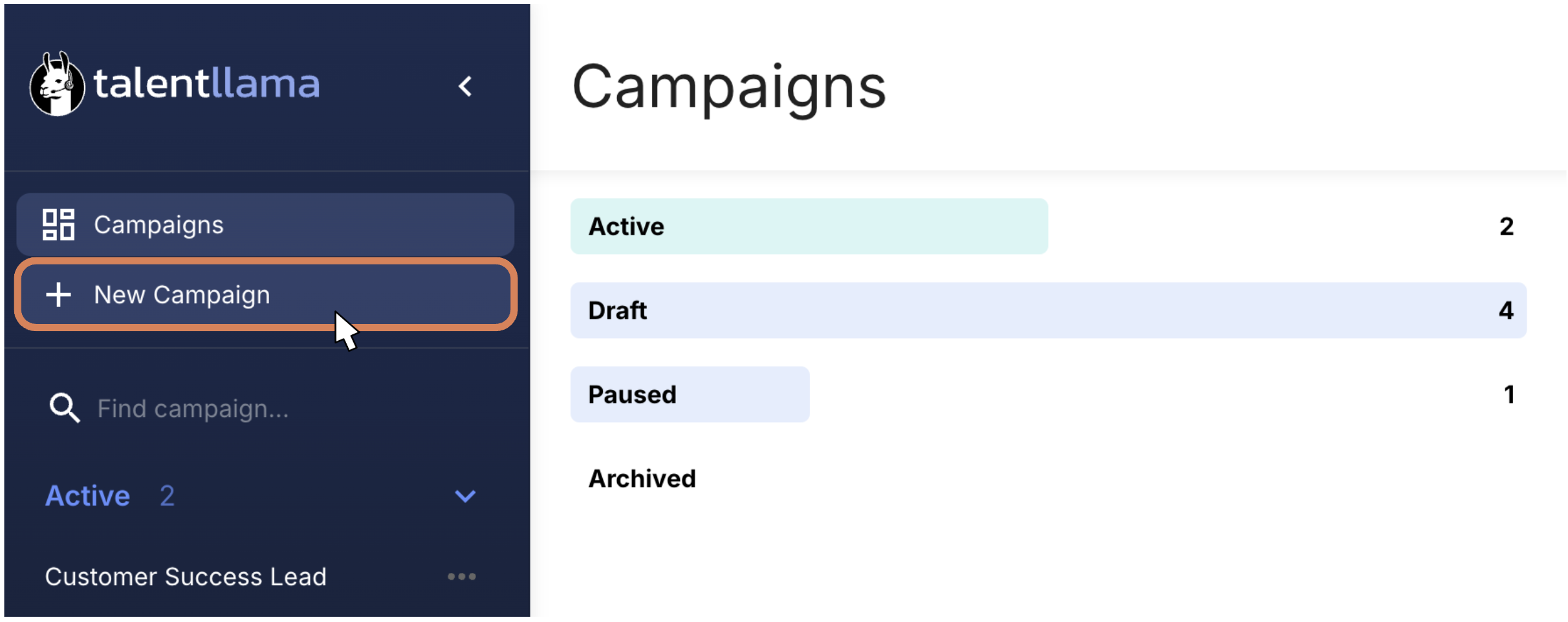 Step One: From your Dashboard, click New Campaign in the left side menu.